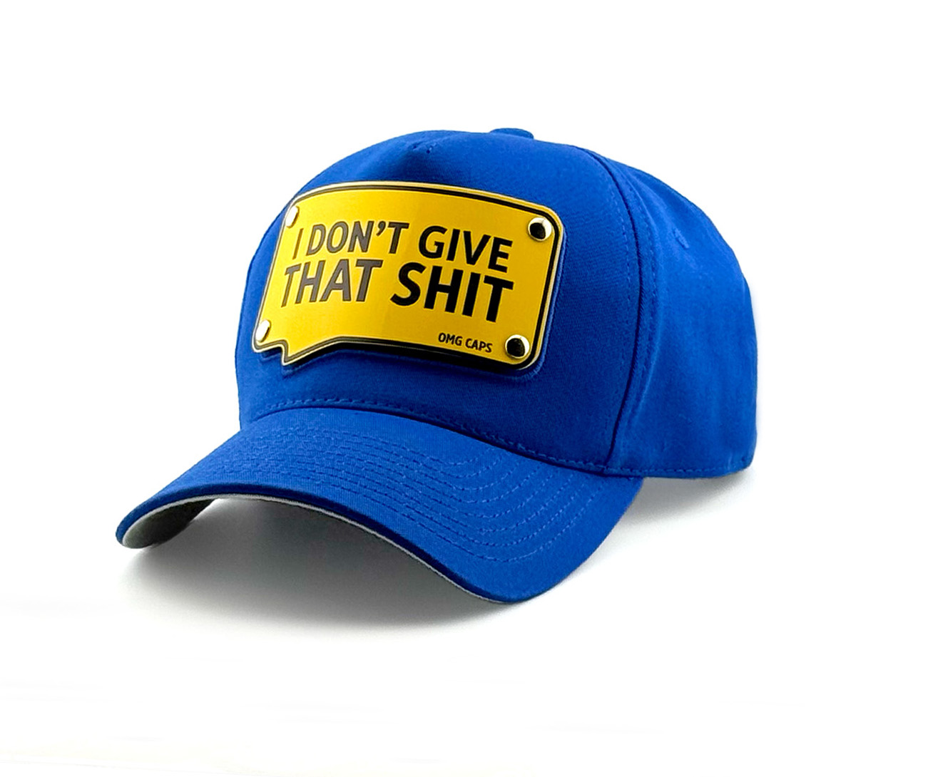 Ta niebieska czapka „II don’t give that shit” to połączenie stylu i luzu – zdobi ją błyszcząca, metalowa blaszka z odważnym napisem.